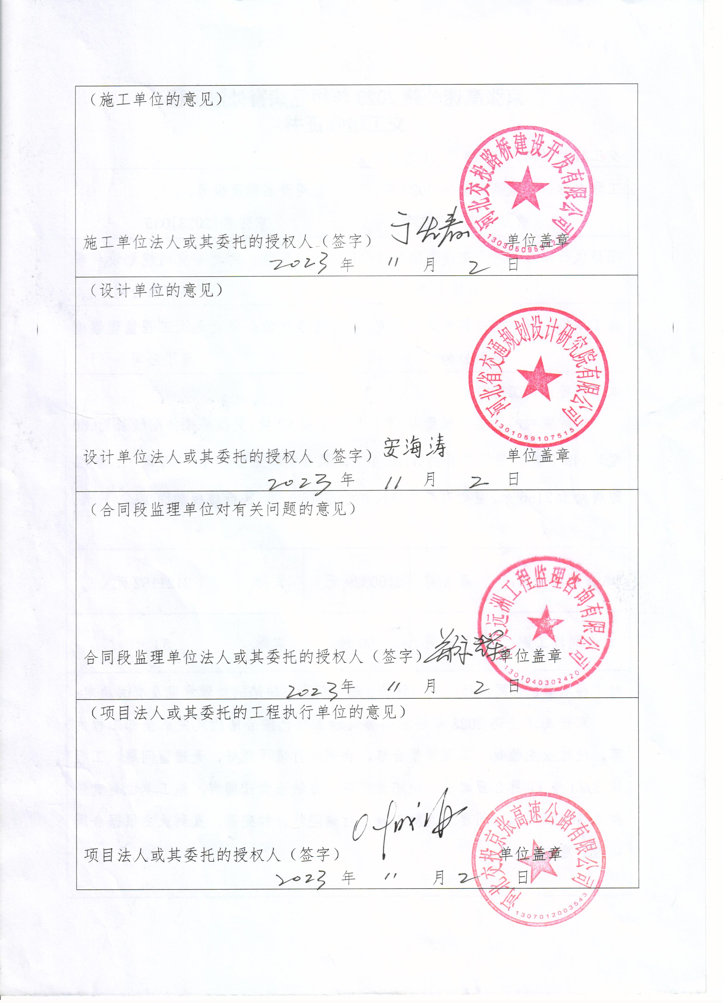 京張高速公路2023年橋涵病害處治工程交工驗收證書